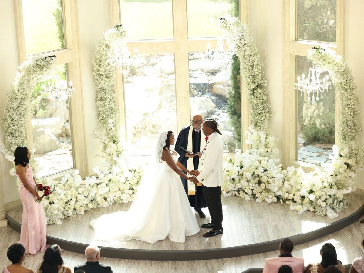 When asked what his favorite moment from the wedding day was, Darius said it was seeing his bride make her entrance. “The moment the doors opened and I saw her in that gown. Everything around us faded,” he said, before sharing a bonus moment. “And later, dancing with our families—it just felt like the start of something eternal.”