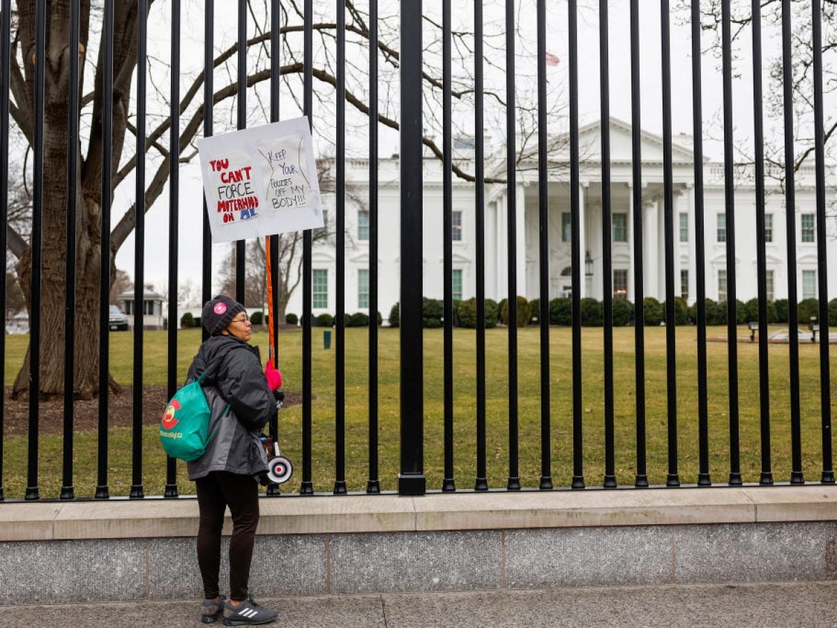 WASHINGTON, DC – JANUARY 22: People protest in front of the White House during the annual National Women’s March on January 22, 2023 in Washington, DC. The march, also called “Bigger than Roe,” was held to mark the 50-year anniversary since the ruling on Roe v. Wade, and to protest the Supreme Court’s ruling in the Dobbs vs Jackson Women’s Health case, which takes back federal protections for access abortions. (Photo by Anna Moneymaker/Getty Images)