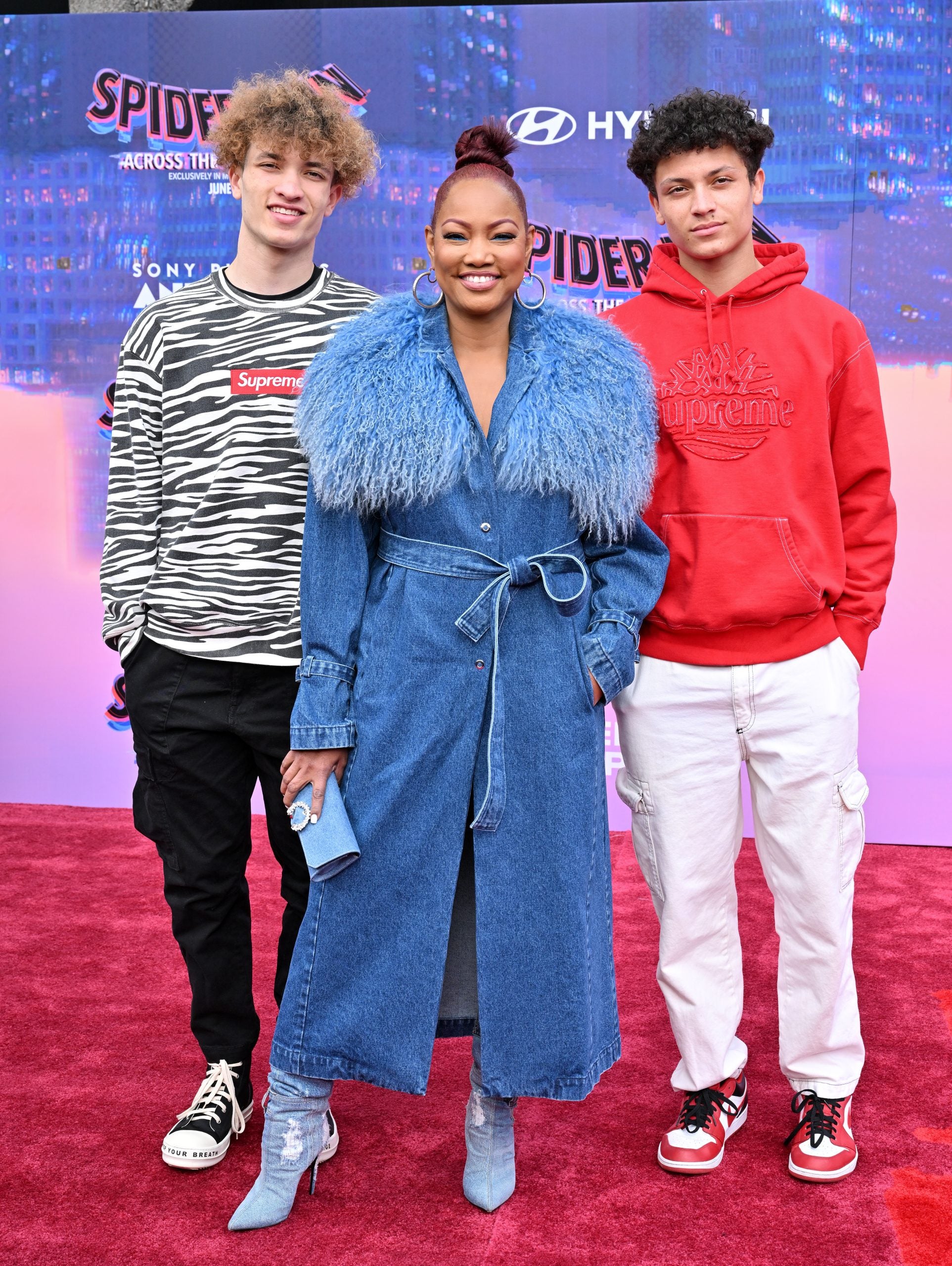 LOS ANGELES, CALIFORNIA – MAY 30: (L-R) Jaid Thomas Nilon, Garcelle Beauvais, and Jax Joseph Nilon attend the World Premiere of Sony Pictures Animation’s “Spider-Man: Across the Spider Verse” at Regency Village Theatre on May 30, 2023 in Los Angeles, California. (Photo by Axelle/Bauer-Griffin/FilmMagic )