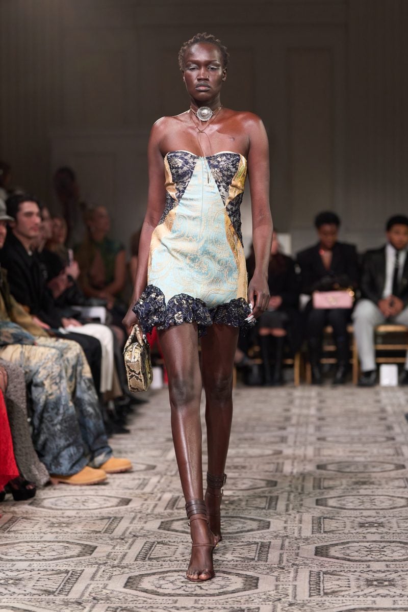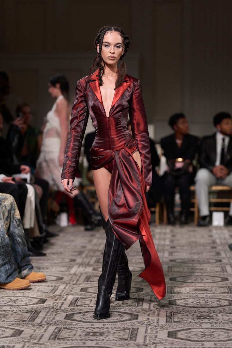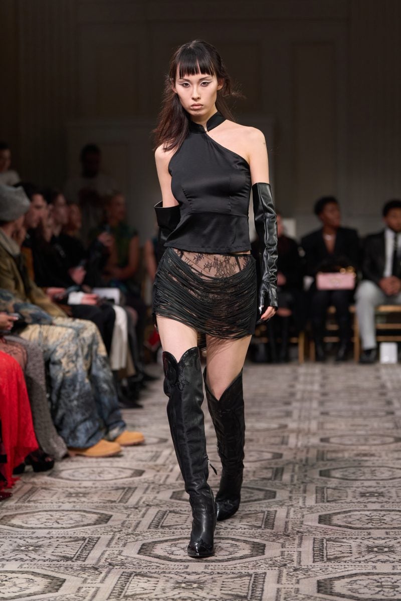 Kim Shui’s FW25 pieces invited onlookers to question norms through a deconstructed lens that leaned on subversiveness rather than overt messaging. This led to pieces being constructed in an authentic way to showcase Shui’s design codes while implementing an element of the symbolism and touches of her cultures colliding.