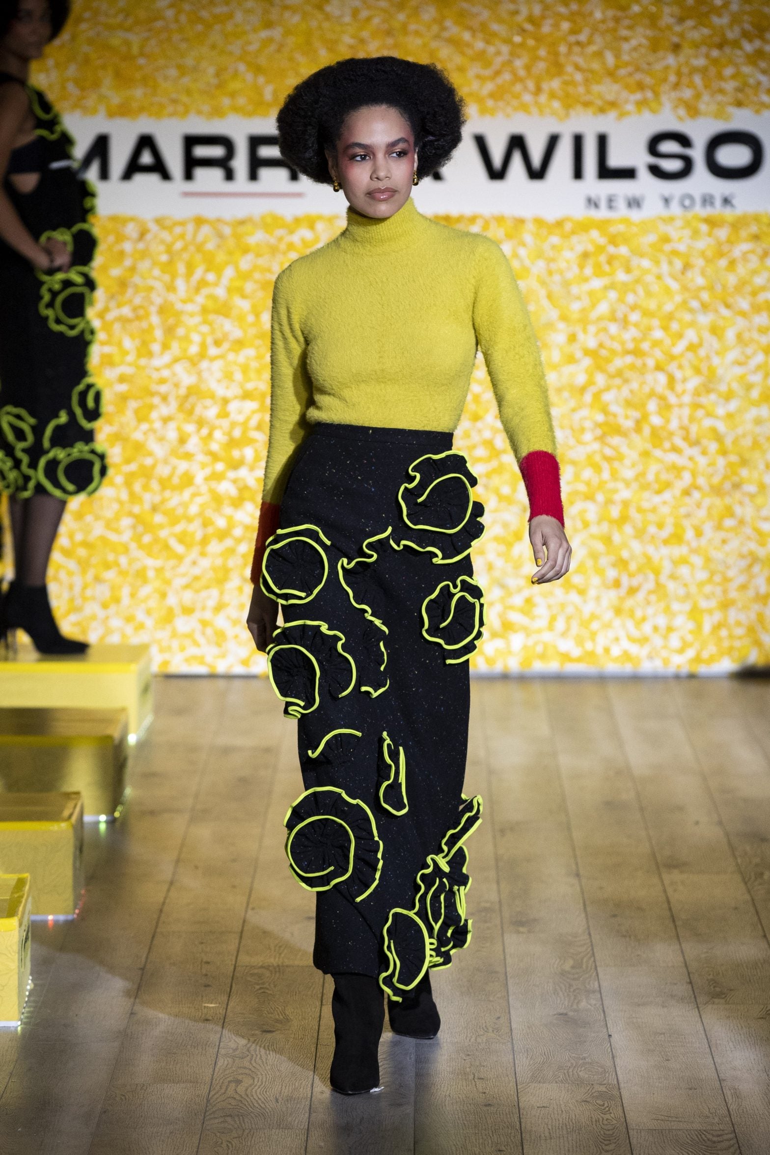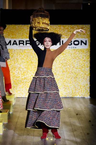In closing, special guest and serving muse Pat Cleveland strutted down the runway hand in hand with Wilson during the curtain call. The icon wore a two-toned sweater turtleneck, a tiered tweed skirt, and red boots. The runway and print model was one of the first African American models to succeed in the 60s and 70s. She also studied under Katherine Dunham, another muse for the Marrisa Wilson collection. Wilson stated that she spent a great deal of time studying Katherine Dunham’s old videos during ideation while looking for fabrics and textures to incorporate. So having Pat Cleveland as a part of the presentation was a momentous moment for Wilson and the brand.