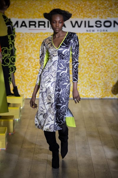 The sound of percussion rumbles closer and closer down the runway. The sound of jazz from the live jazz band, Hera, erupts. Following behind the instrumental is opening model Lauren Forge who danced and twirled down the runway. Marrisa Wilson’s titled Rhythemic Fall/Winter ’23 collection represents the cross sections of music, movement, comfort, and individuality. Ahead of the presentation, ESSENCE caught up with Wilson on the significance of these themes in her collection. “I was a dancer for most of my life, so I have a deep connection with music and movement. I think about the creative process of crafting my collection as choreography. When I can hear the music, it helps me to visualize. It’s a celebration of expression,” she says.