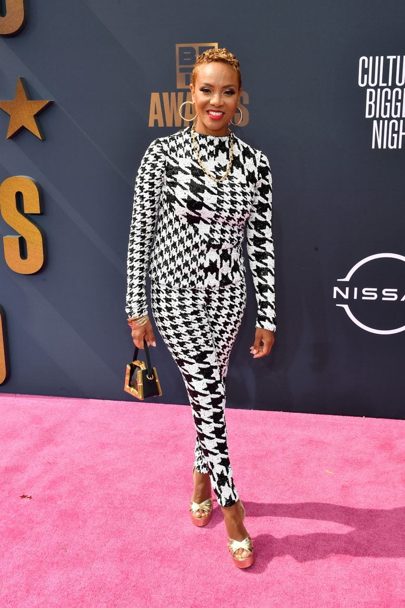 Fast‑forward to the 2000s and beyond, MC Lyte‘s wardrobe took on high-fashion bravado with sequin gowns, Japanese-inspired cuts, and chic monochrome vibe. Her short-cropped hair became iconic, a clean canvas for statement earrings and bold eyewear. She curated narratives of feminine power and cultural pride. Every look was a masterclass in balancing street roots and runway sophistication, drawing admiration from fans and fashionistas alike.