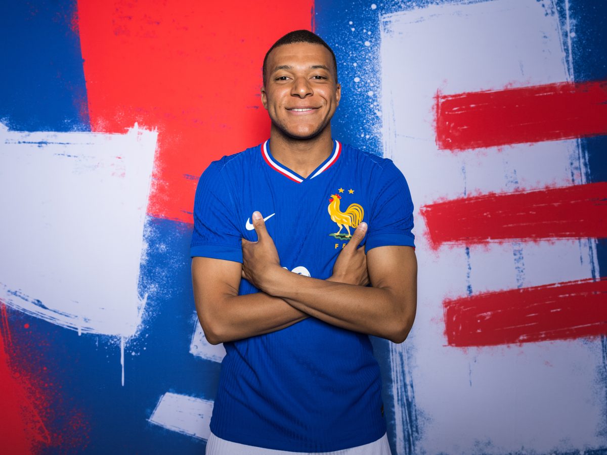PADERBORN, GERMANY – JUNE 13: Kylian Mbappe of France poses for a portrait during the France Portrait session ahead of the UEFA EURO 2024 Germany on June 13, 2024 in Bad Lippspringe near Paderborn, Germany. (Photo by Michael Regan – UEFA/UEFA via Getty Images)