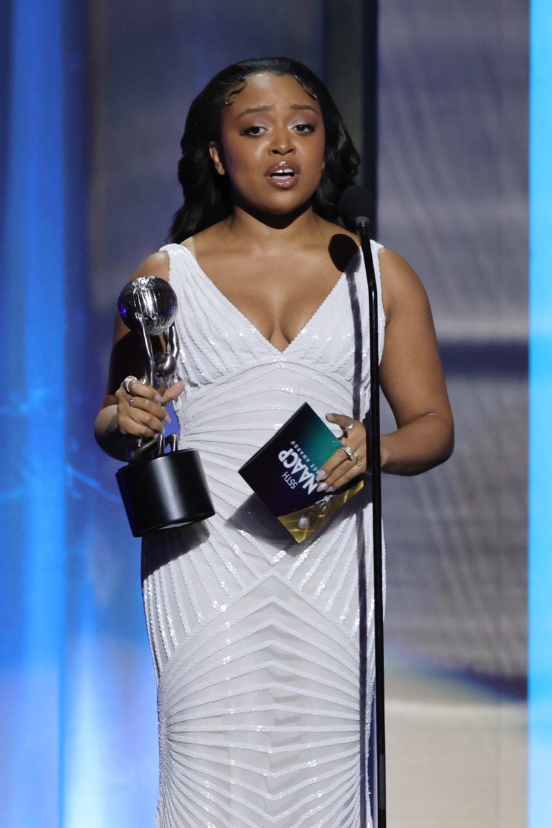 LOS ANGELES, CALIFORNIA – MARCH 16: Quinta Brunson accepts the Outstanding Actress in a Comedy Series award for “Abbott Elementary” onstage during the 55th Annual NAACP Awards at the Shrine Auditorium and Expo Hall on March 16, 2024 in Los Angeles, California. (Photo by Kevin Winter/Getty Images)