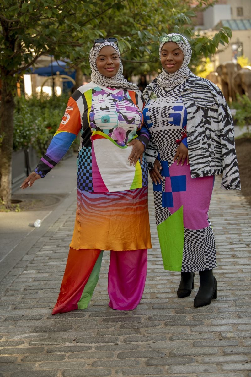 Lots of BruceGlen prints and patterns made an appearance on the stylish streets of New York. One attendee stood out in a pair of wide-legged ombre effect pants featuring a slew of vibrant colors. Another guest wore a matching vibrant set with rainbow color blocking throughout. Additionally, some attendees mixed their patterns by layering a zebra print dress over colorful pants, pairing it with a zebra print jacket over a graphic printed maxi dress, complete with pops of pink and green. Another eye-catching ensemble featured a pink and yellow polka dot shirt and maxi skirt paired with a floral print blue and orange jacket. The look was rounded off with a unique-shaped pink hat and a pink and orange handbag, creating a cohesive, bold look. If you’re looking for inspiration on adding color to your wardrobe, keep scrolling.