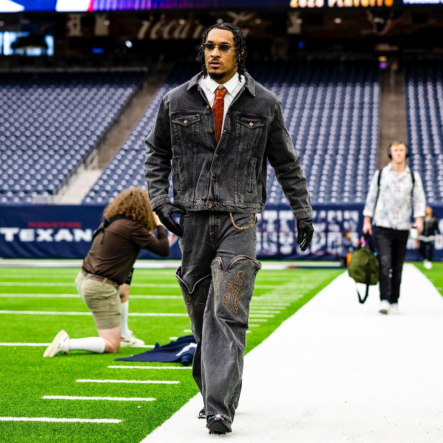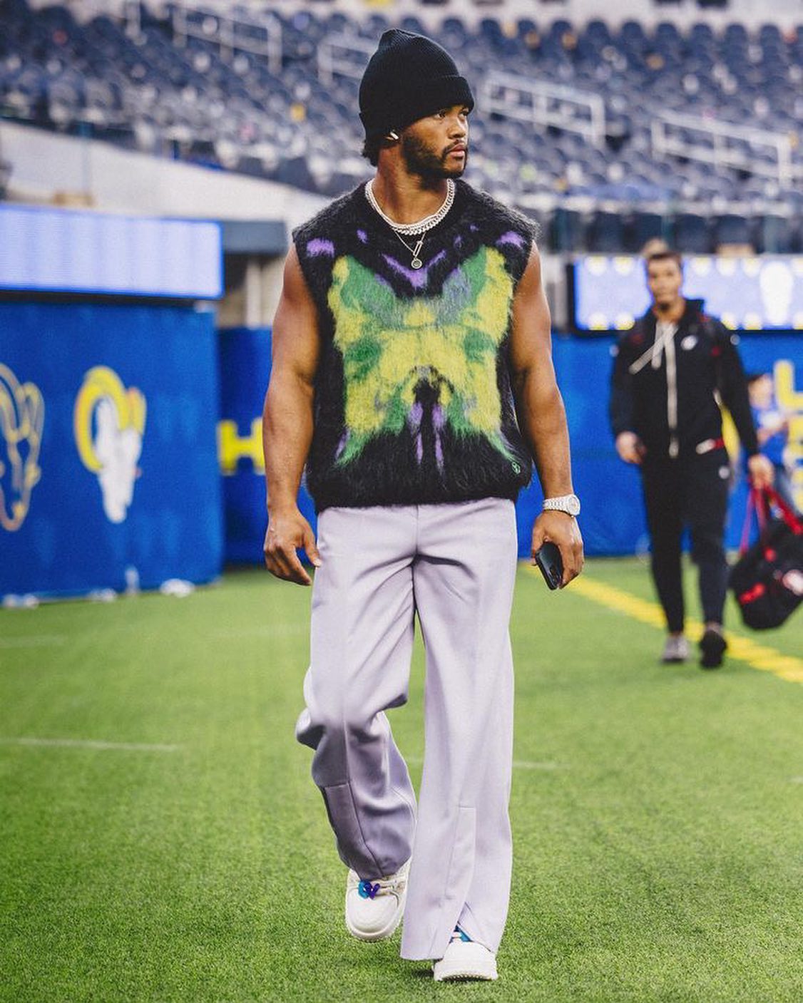 Tunnel looks this season have taken on a life of their own. In recent years we’ve been paying attention to the pro football players who are unafraid to step out for games in pieces that are eccentric and at times wacky. There have been style moments over the past few months that have felt like the players are peacocking too. But, to be frank we’re enjoying every minute of these looks that consist of statement pieces from Bottega Veneta, Yohji Yamamoto, Acne Studios, Y/Project, and countless others.
