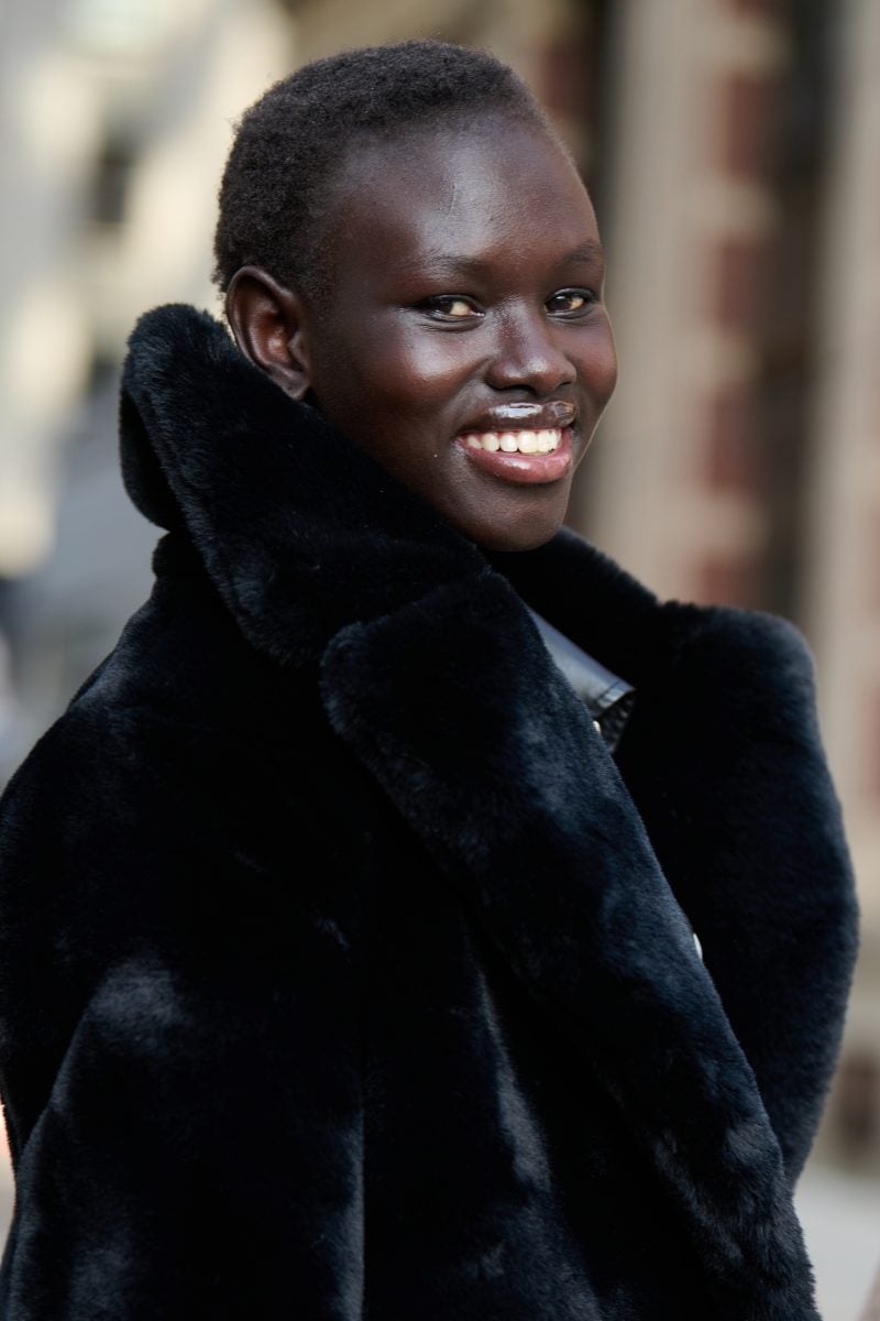 But it wouldn’t be fashion week without taking a little risk, either. Some attendees rocked unexpected lipstick and hair shades, such as turquoise and ice blue. Oh! And we can’t forget the emphasis on skin: everything from matte powders to iridescent dews.
