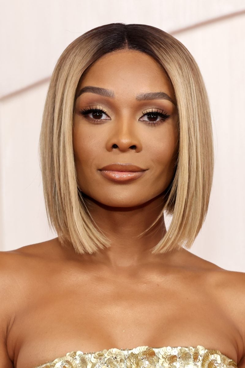 Oscar winner Da’Vine Joy Randolph must have arrived in a horse-drawn carriage because her rich blonde wig– treated with the Joico Defy Damage KBOND20 Power Masque– and blue gown turned her into Cinderella. Meanwhile, Wicked star Cynthia Erivo’s nails won the red carpet with emerald Gel-X extensions, which her black and green smoke liner played into. Meanwhile, Zendaya– who is known to snap paparazzi’s necks– stunned with her bouncy bob. Danielle Brooks was feeling the bob life as well, which paired perfectly with her elegant black dress and string of diamonds.