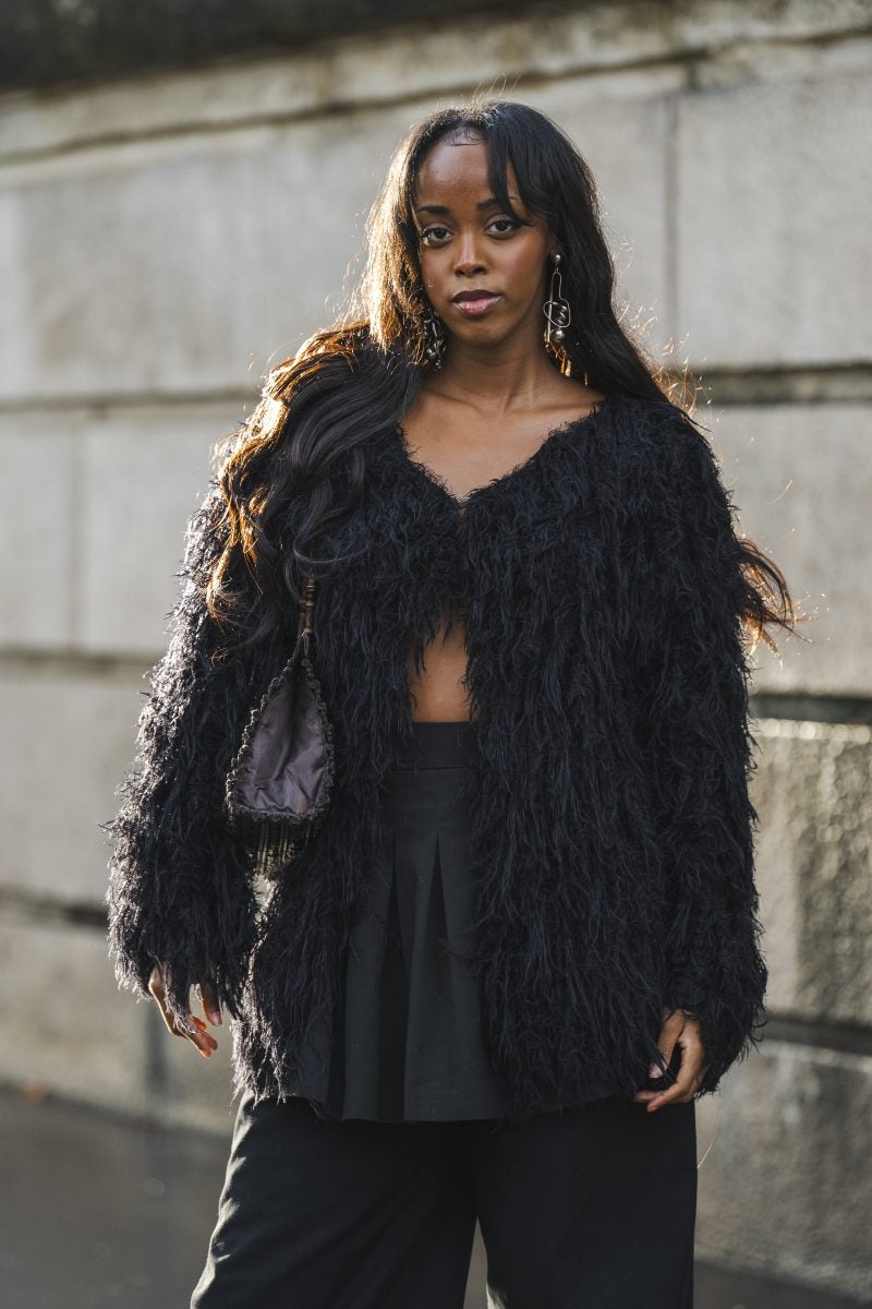 Tamu McPherson, influencer and writer donned an elegant silken dress in a decadent tan hue. Her leather boots and handbag with fur accents were delicate and fitting pairings. We’re predicting she was heading to Chloé. Another equally interesting look included Wonderland editor-in-chief Toni Blaze who was spotted in a button-up frock. A lavish white faux fur jacket and white pointed-toe heels were the key accessories for her look.