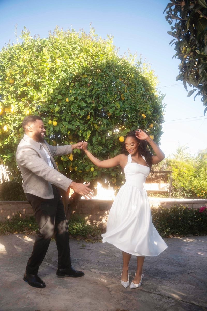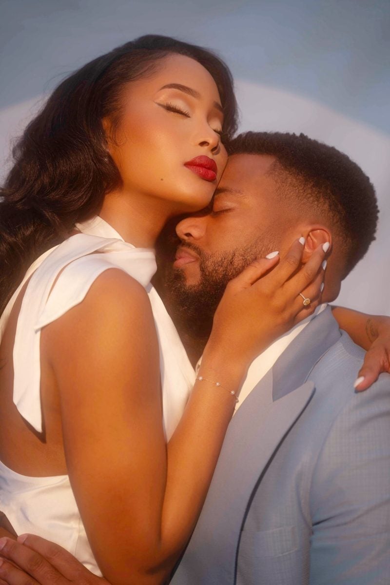 “Our incredible photographer, Obidi Nzeribe, captured it perfectly. We didn’t want a classic engagement shoot. We wanted something more stylized and cinematic, something that felt like art,” she adds. “These are some of my favorite images we’ve ever taken, and I know they’ll become heirlooms for our family in the generations to come.”
