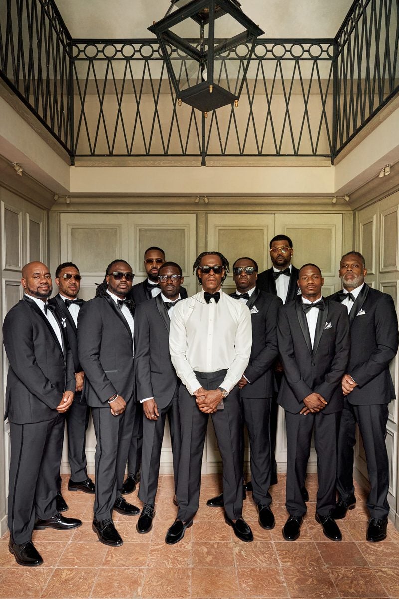 “We are each other’s person,” LaToia says of her husband, pictured with his groomsmen and loved ones. “I can wholeheartedly say that Rajon is my soulmate and I feel so secure with him. He is my safe space, I can talk and go to him about everything. He motivates and challenges me! We truly bring out the best in each other.”