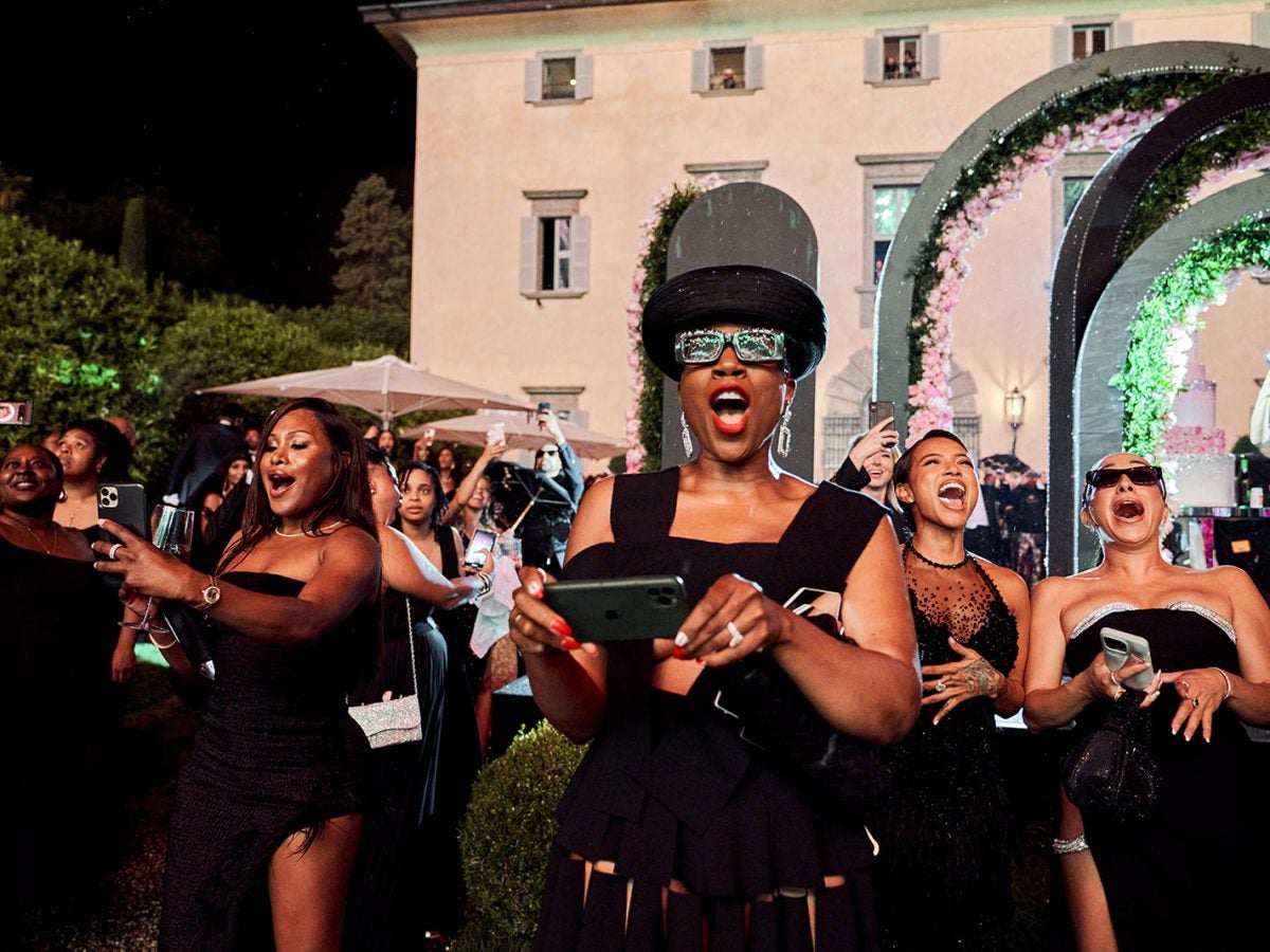 And so they made it happen, inviting a who’s who of family and famous friends to Lake Como, where they said “I do” on June 8 at the Villa Balbiano. And for an Italian ceremony, it only made sense for the bride to walk down the aisle in custom Dolce & Gabanna. The entire fashion house’s team was on hand to dress her for the special occasion. She wore a stunning lace gown with matching gloves and a cascading train.