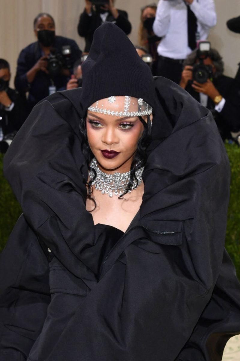 Barbadian singer Rihanna arrives for the 2021 Met Gala at the Metropolitan Museum of Art on September 13, 2021 in New York. – This year’s Met Gala has a distinctively youthful imprint, hosted by singer Billie Eilish, actor Timothee Chalamet, poet Amanda Gorman and tennis star Naomi Osaka, none of them older than 25. The 2021 theme is “In America: A Lexicon of Fashion.” (Photo by ANGELA WEISS / AFP) (Photo by ANGELA WEISS/AFP via Getty Images)