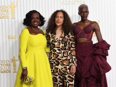 US actress Viola Davis (L), durector Gina Prince-Bythewood (C) and British actress Sheila Atim (R) arrive for the 29th Screen Actors Guild Awards at the Fairmont Century Plaza in Century City, California, on February 26, 2023. (Photo by VALERIE MACON / AFP) (Photo by VALERIE MACON/AFP via Getty Images)
