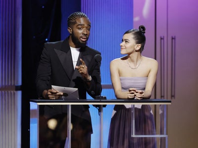 LOS ANGELES, CALIFORNIA – FEBRUARY 26: (L-R) Caleb McLaughlin and Antonia Gentry speak onstage during the 29th Annual Screen Actors Guild Awards at Fairmont Century Plaza on February 26, 2023 in Los Angeles, California. (Photo by Kevin Winter/Getty Images)