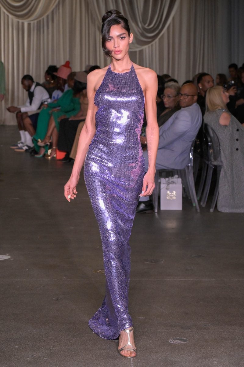 One segment of the show spoke to Hudson’s affinity for eveningwear–and it also pointed to his other source of inspiration for this show, jazz singer Nancy Wilson and her song “The Good Life.” One striking look from this part of the presentation happened to be a lilac sequined gown, Hudson said each of the gowns included pieces he could envision the music icon wearing while onstage. He explained that he was excited to pay homage to another woman who he looks up to.