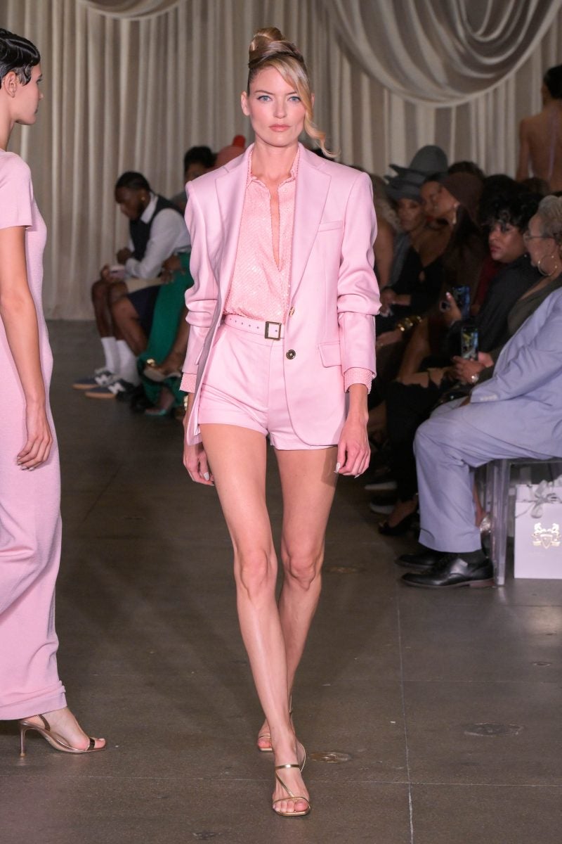 Hes such as those described as baby pink and sky blue were large parts of Hudson’s latest creations. Canary yellow which appears to be trending this summer in addition to lavender was also utilized. An all-pink outfit short suit with a salmon-hued undershirt left an impression. Hudson said he deliberately chose happy colors that make you want ice cream. Each of these hits of color was tasteful and effective.