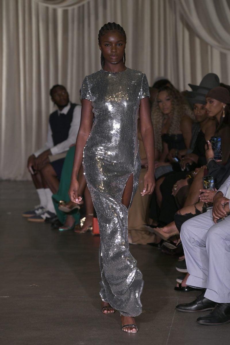 Hudson whose soundtrack consisted of jazzy sounds from Jazmine Sullivan to the legend he envisioned in these designs, Nancy Wilson, was hopeful that his showgoers left the show feeling happy. Smiles and laughs ran aplenty at the presentation, especially when Veronica Webb walked out wearing a sequined long-sleeved frock in white. Mission complete.