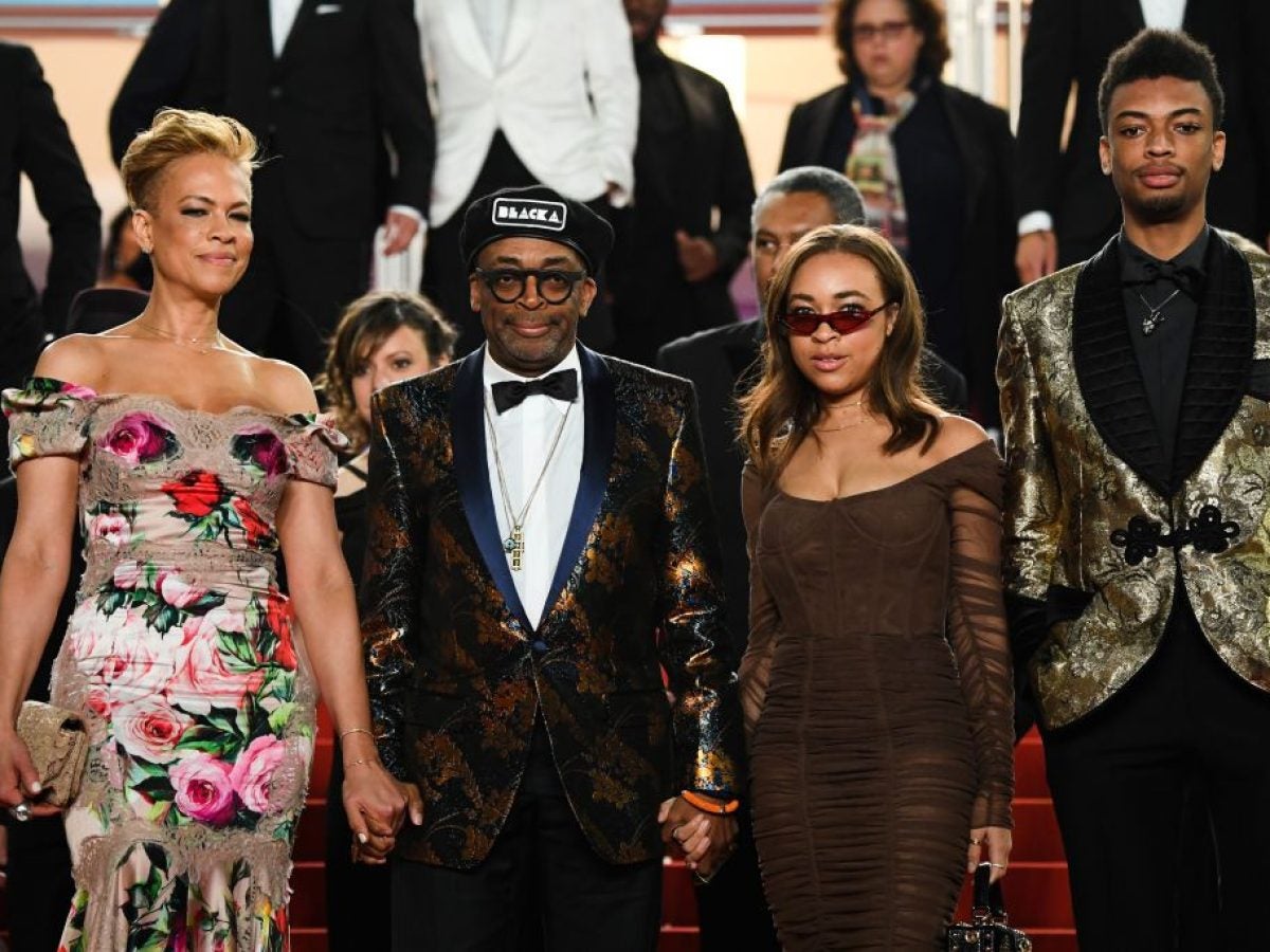 US director Spike Lee (2ndL), his wife Tonya Lewis Lee (L), their children Satchel Lee (2ndR) and Jackson Lee pose on May 14, 2018 while leaving following the screening of the film “BlacKkKlansman” at the 71st edition of the Cannes Film Festival in Cannes, southern France. (Photo by LOIC VENANCE / AFP) (Photo credit should read LOIC VENANCE/AFP via Getty Images)