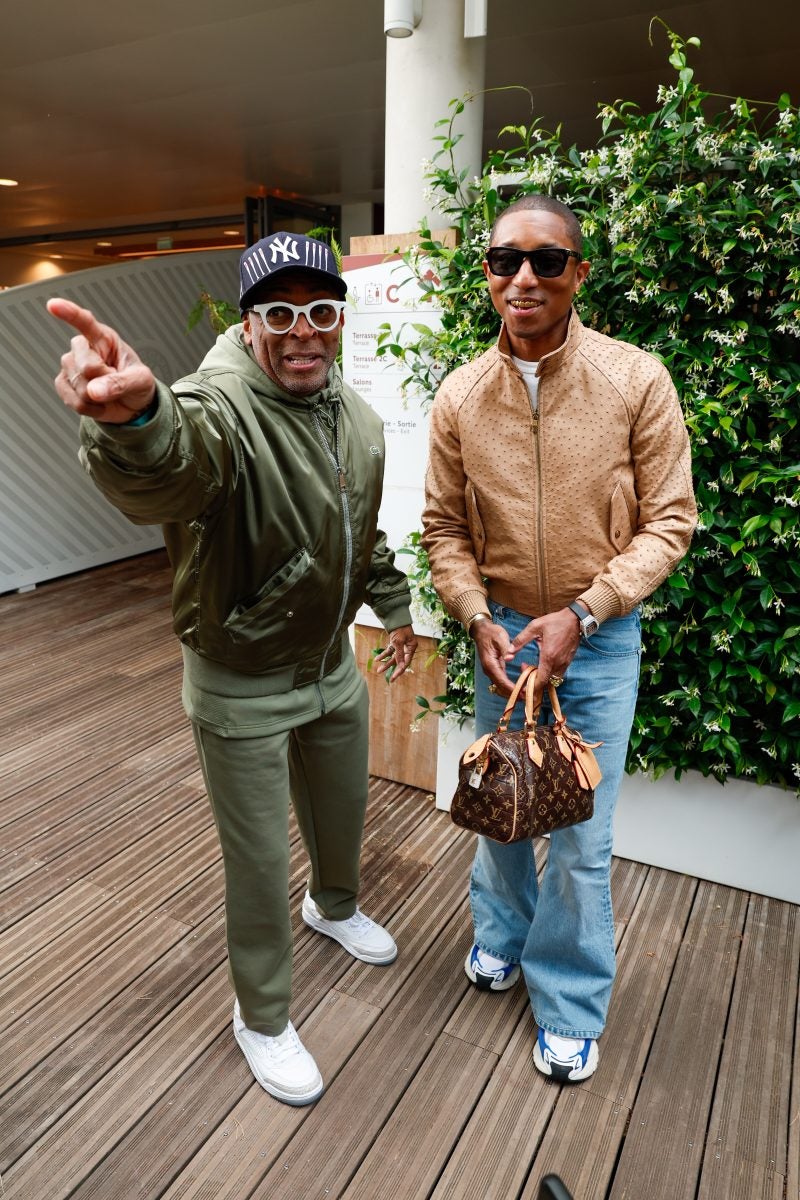 PARIS, FRANCE – JUNE 08: Spike Lee and Pharell Williams are seen on Day Fifteen of the French Open at Roland Garros on June 08, 2025 in Paris, France. (Photo by Pierre Suu/WireImage)