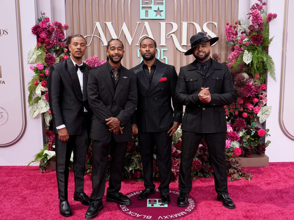 LOS ANGELES, CALIFORNIA – JUNE 09: (L-R) Lil’ Fizz, Omarion, J-Boog, and Raz-B of B2K attend the 2025 BET Awards at Peacock Theater on June 09, 2025 in Los Angeles, California. (Photo by Bennett Raglin/Getty Images for BET)