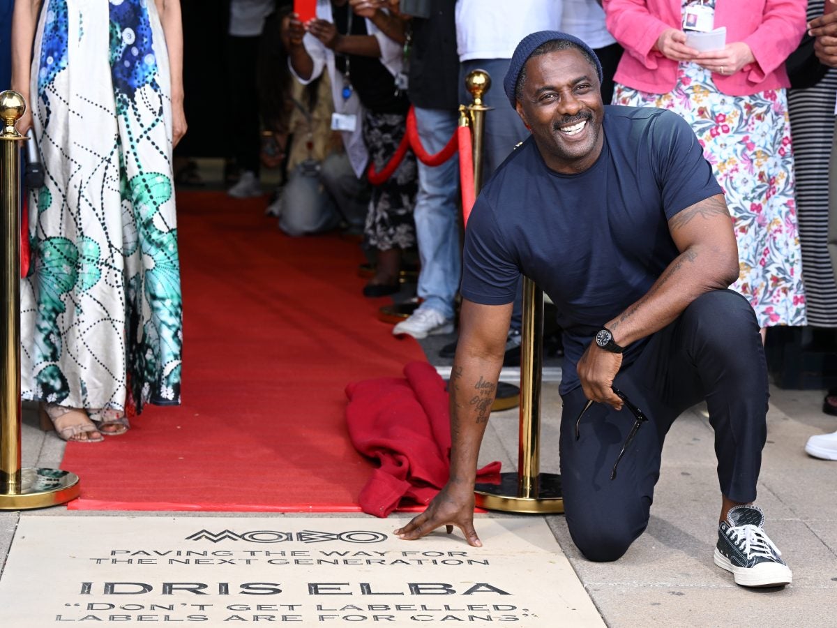 LONDON, ENGLAND – JUNE 13: Idris Elba attends the MOBO’s Paving The Way Stone photocall at Rush Green Campus on June 13, 2025 in London, England. (Photo by Jeff Spicer/Getty Images)