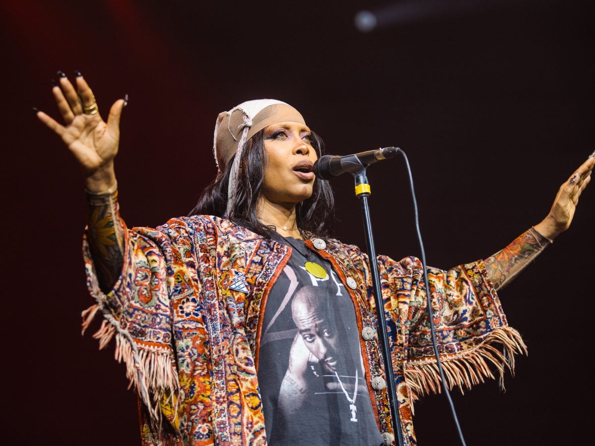SAO PAULO, BRAZIL – NOVEMBER 6: Erykah Badu performs live on stage at Espaço Unimed on November 6, 2024 in Sao Paulo, Brazil. (Photo by Mauricio Santana/Getty Images)