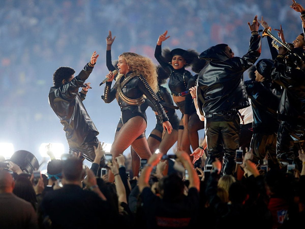 SANTA CLARA, CA – FEBRUARY 07: (L-R) Bruno Mars and Beyonce perform during the Pepsi Super Bowl 50 Halftime Show at Levi’s Stadium on February 7, 2016 in Santa Clara, California. (Photo by Sean M. Haffey/Getty Images)
