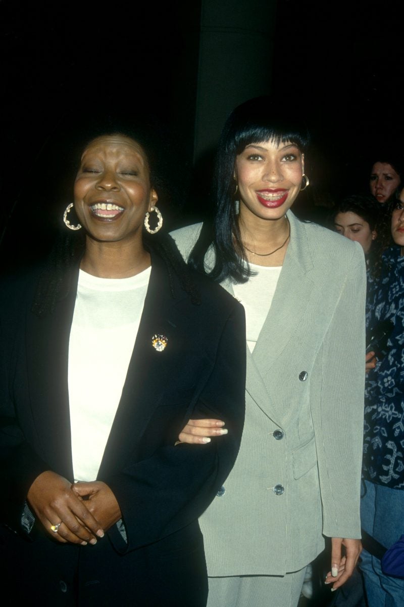 HOLLYWOOD, CA – FEBRUARY 2: Actress Whoopi Goldberg poses for a portrait with her daughter Alexandra during her Braid, Hand and Footprint Ceremony on February 2, 1995 at Mann’s Chinese Theater in Hollywood, California. (Photo by Ron Davis/Getty Images)