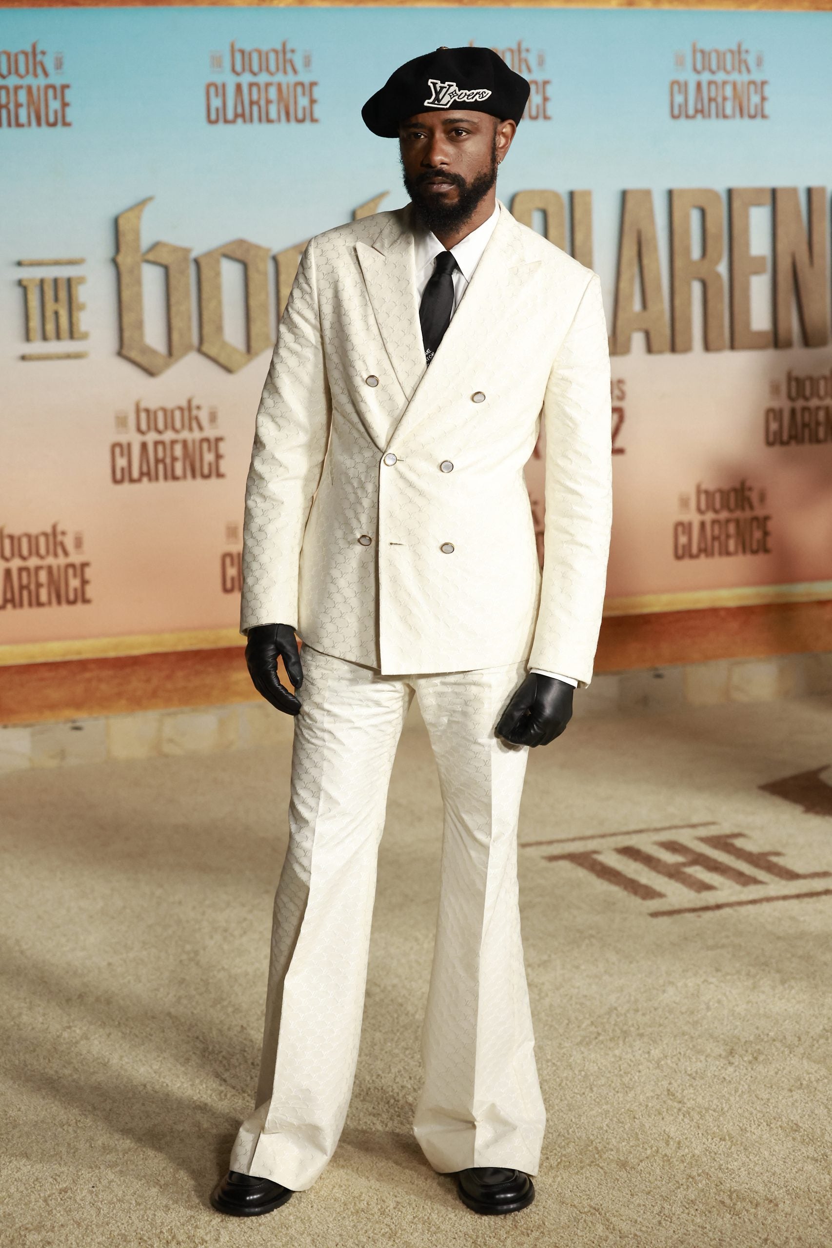 The men delivered quite a few delightful looks too. David Oyelowo wore a sky-blue leather suit by Amiri. And LaKeith Stanfield was wearing an aesthetically pleasing cream-patterned suit from Pharrell Williams and Louis Vuitton’s Pre-Fall 2024 collection. His outfit was topped off with a black beret.