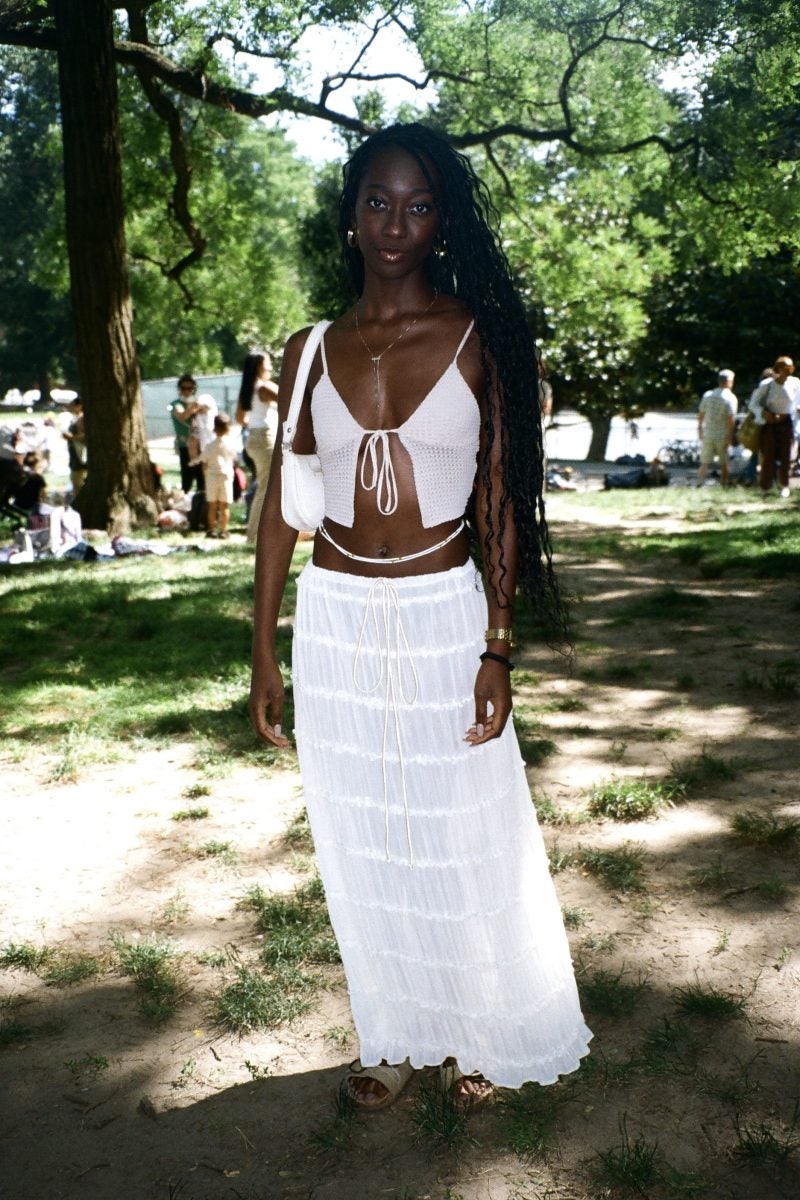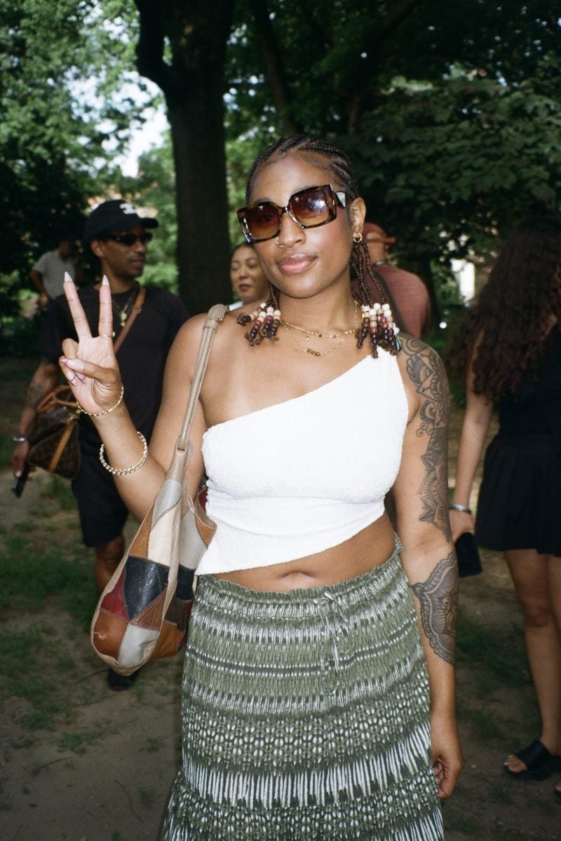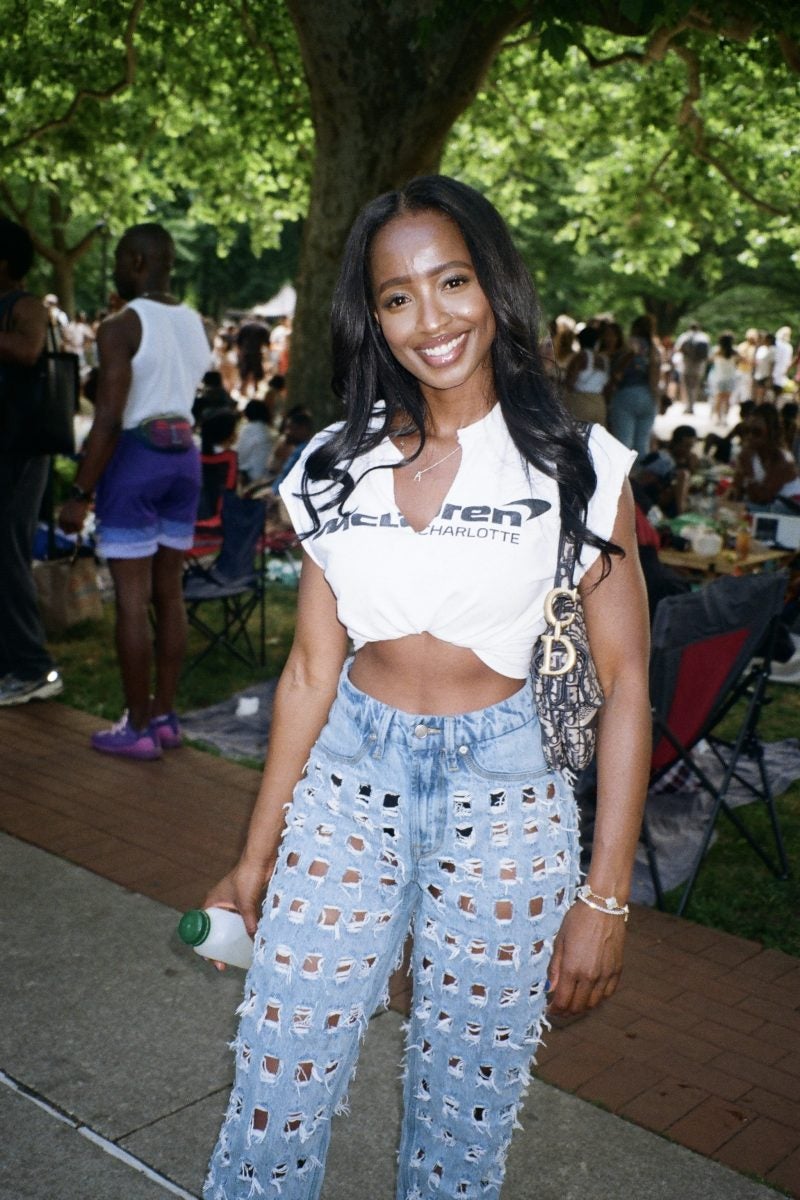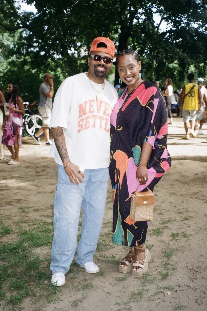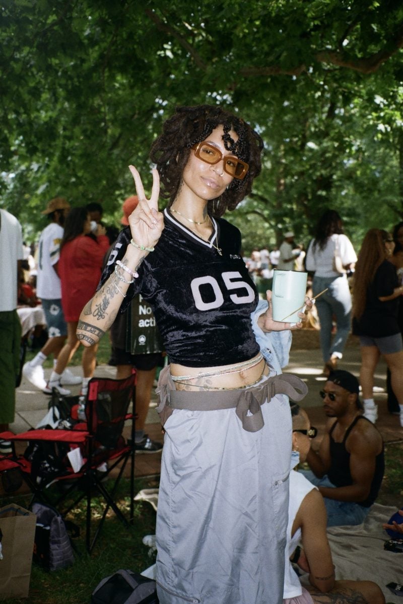 One Love’s partnership extends to other ends of The Lay Out’s programming, including a food relief station manned this past Sunday in collaboration with the Walt Whitman Houses on the park’s Northwest edge. Asmeret Berhe-Lumax, the founder of One Love, took the helm of the assembly line and was joined by volunteers to pack bags of food for donation. Their work transcends providing sustenance, evolving into a symbol of unity and empowerment. Through collective effort, they transform discussions around food access into a tapestry of hope and resilience. “So many moments have meant so much to us,” Lumax tells ESSENCE. “What I think I’m most proud of is how many people we can bring into this work. It’s about how we create ripple effects in the community, all backgrounds coming together in one space.” There is a natural alignment between Anadu’s work and Lumax’s—The Lay Out is similarly rooted in joint uplift through cooperative commerce and recreation, just as One Love is through thoughtful nourishment.