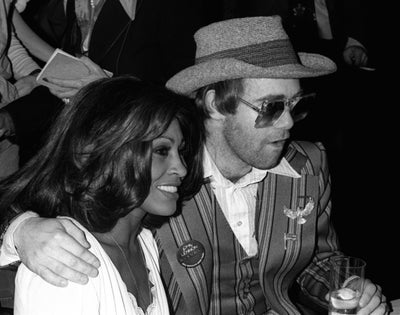 NEW YORK CITY – MARCH 17: Tina Turner and Elton John attend After Dark Ruby Awards on March 17, 1975 at the Waldorf Astoria Hotel in New York City. (Photo by Ron Galella, Ltd./Ron Galella Collection via Getty Images)