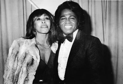 American singers James Brown and Tina Turner backstage at the 1982 Grammy Awards, held at the Shrine Auditorium, Los Angeles, California, February 24, 1982. (Photo by Frank Edwards/Fotos International/Getty Images)