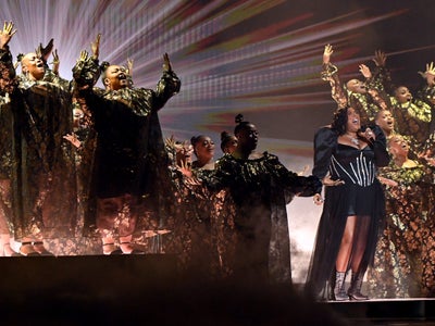 One of the most nominated artists of the evening, Lizzo took a moment to belt out one of her biggest self-love anthems with choir accompaniment, showing the audience just why she’s so nominated.