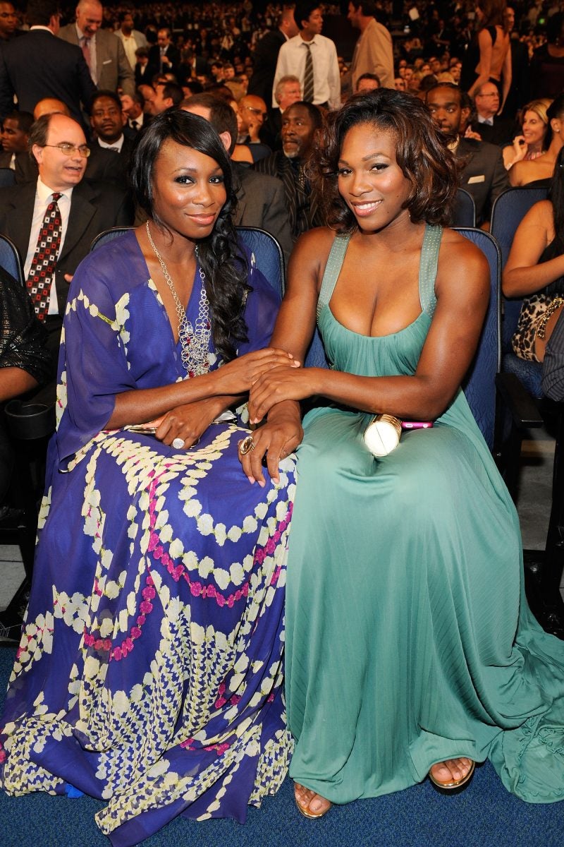 LOS ANGELES, CA – JULY 15: Tennis players Venus Williams (L) and Serena Williams in the audience during the 2009 ESPY awards held at Nokia Theatre LA Live on July 15, 2009 in Los Angeles, California. The 17th annual ESPYs will air on Sunday, July 19 at 9PM ET on ESPN. (Photo by Kevork Djansezian/Getty Images for ESPY)