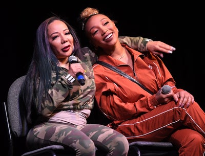 ATLANTA, GEORGIA – NOVEMBER 10: Tameka “Tiny” Harris and Zonnique Pullins speak onstage during 2019 Atlanta Ultimate Women’s Expo at Cobb Galleria Centre on November 10, 2019 in Atlanta, Georgia. (Photo by Paras Griffin/Getty Images)