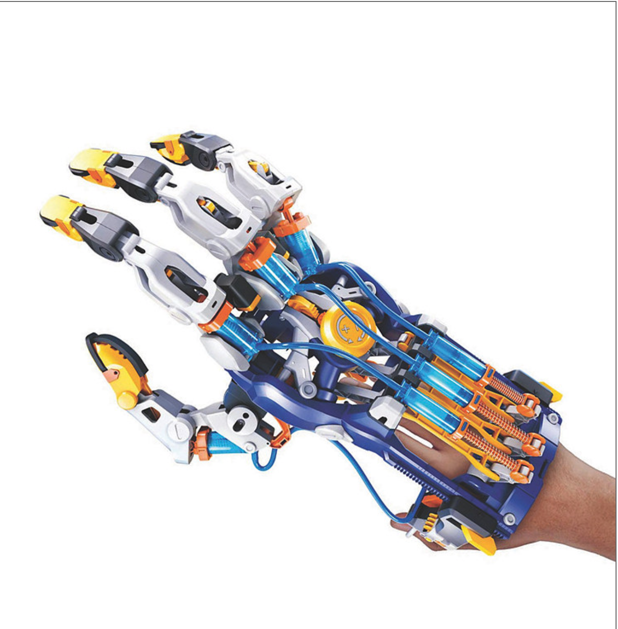 Using hydrolics, pneumatics and robotics, you can build a mechanical hand that simulates the movement of a human hand. The hand can be configured in three ways, left hand, right hand and claw-like, with the thumb in the center. A full-color, 40 page manual will guide you through the model-building and provide engaging scientific information about how pneumatic and hydrolic systems are used in today’s industrial robots. Thames & Kosmos Mega Cyborg Hand