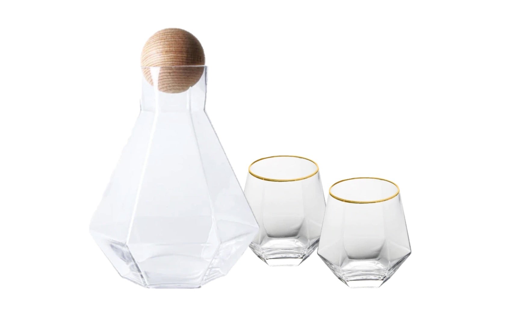 A stylish decanter and ornate geometric glasses for the libations that will be poured, sipped and enjoyed throughout the holiday.