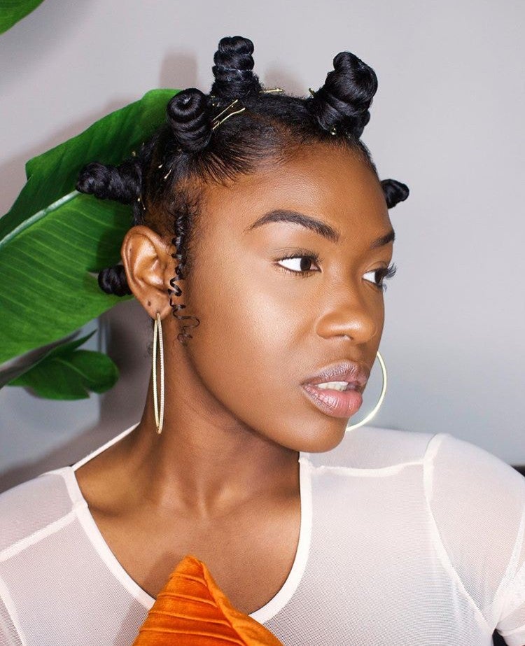 Bantu knots have been a warm weather go to for decades, especially more recently with the natural hair movement gaining momentum. It’s an easy style to do style and it works for hair of all lengths and textures. You can play with the heights and the sizes, you can intertwine braids and jewels into them. Even box braids and locs can be styled into beautiful Bantu knots.