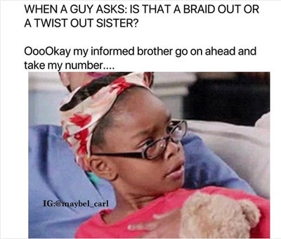 We’re thankful for Instagram memes; they’re the digital post that humorously conveys our thoughts around touchy topics. Take going natural for example. It’s a journey that isn’t easily understood, but memes help to put the unique experience into a hilarious perspective. To make a case in point, check out these memes that accurately and hysterically encapsulate the black hair experience.