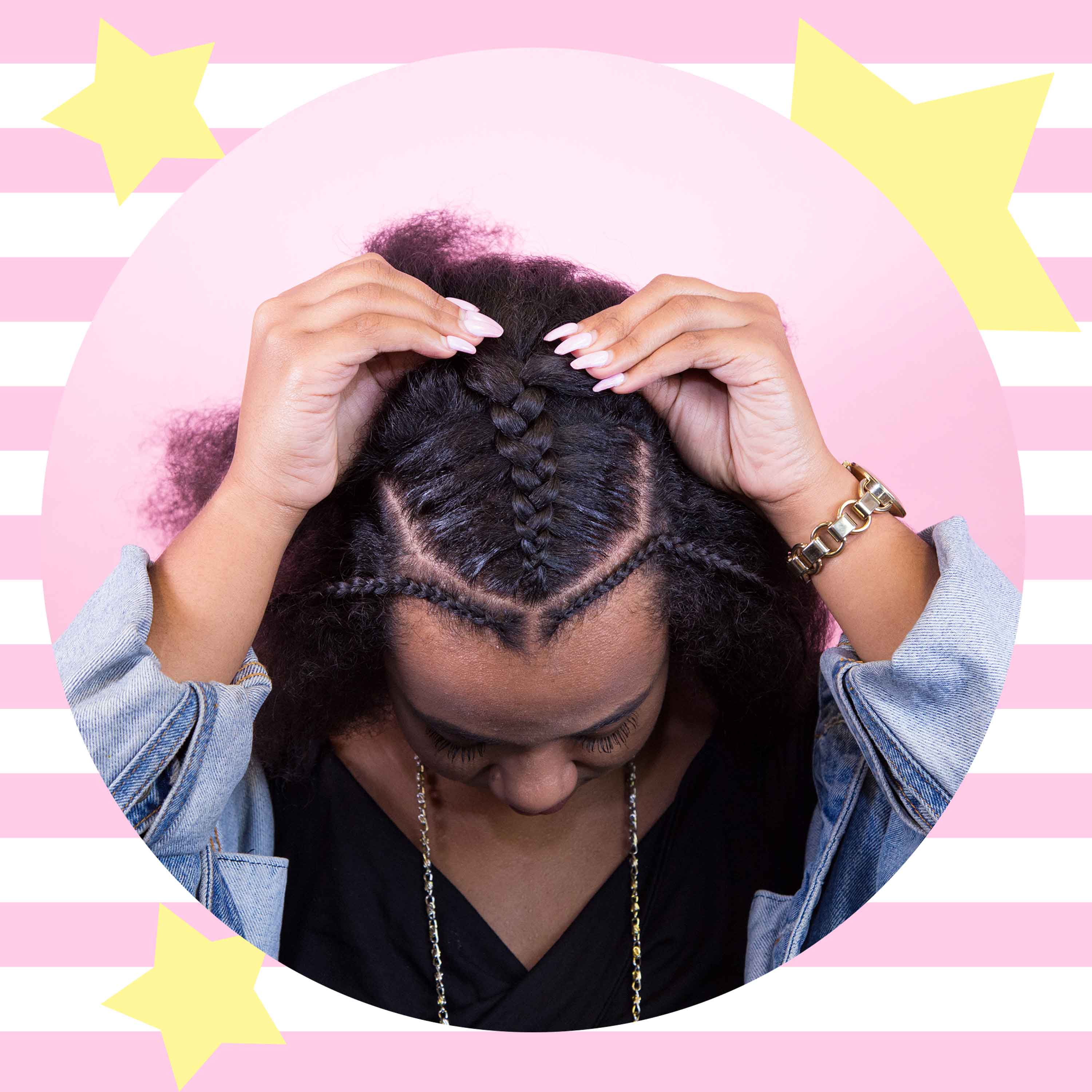 Step 4: Create a small cornrow, braiding from the temple toward the ear.