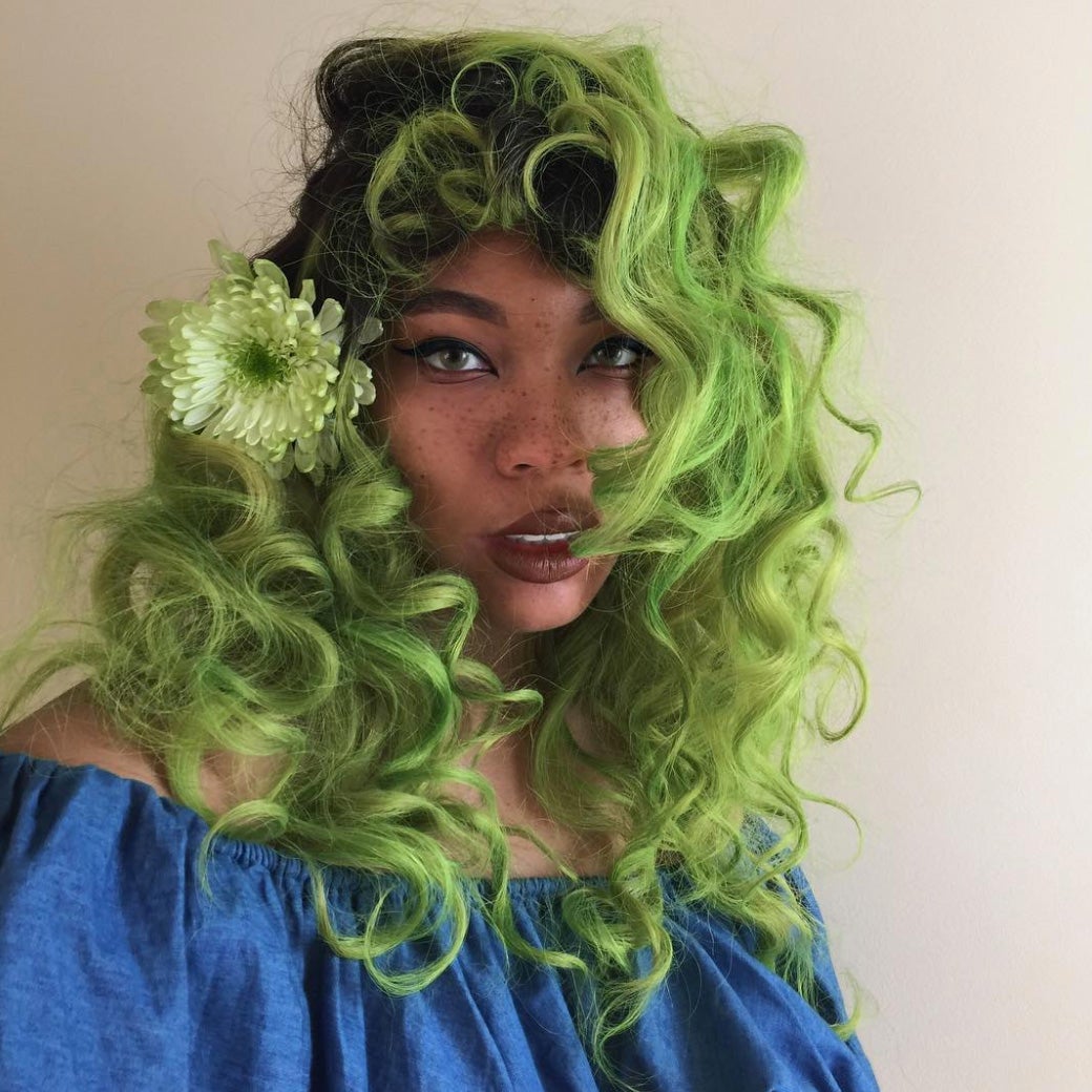 If you want bold hair, get the job done with a popping hair color like this green coif.