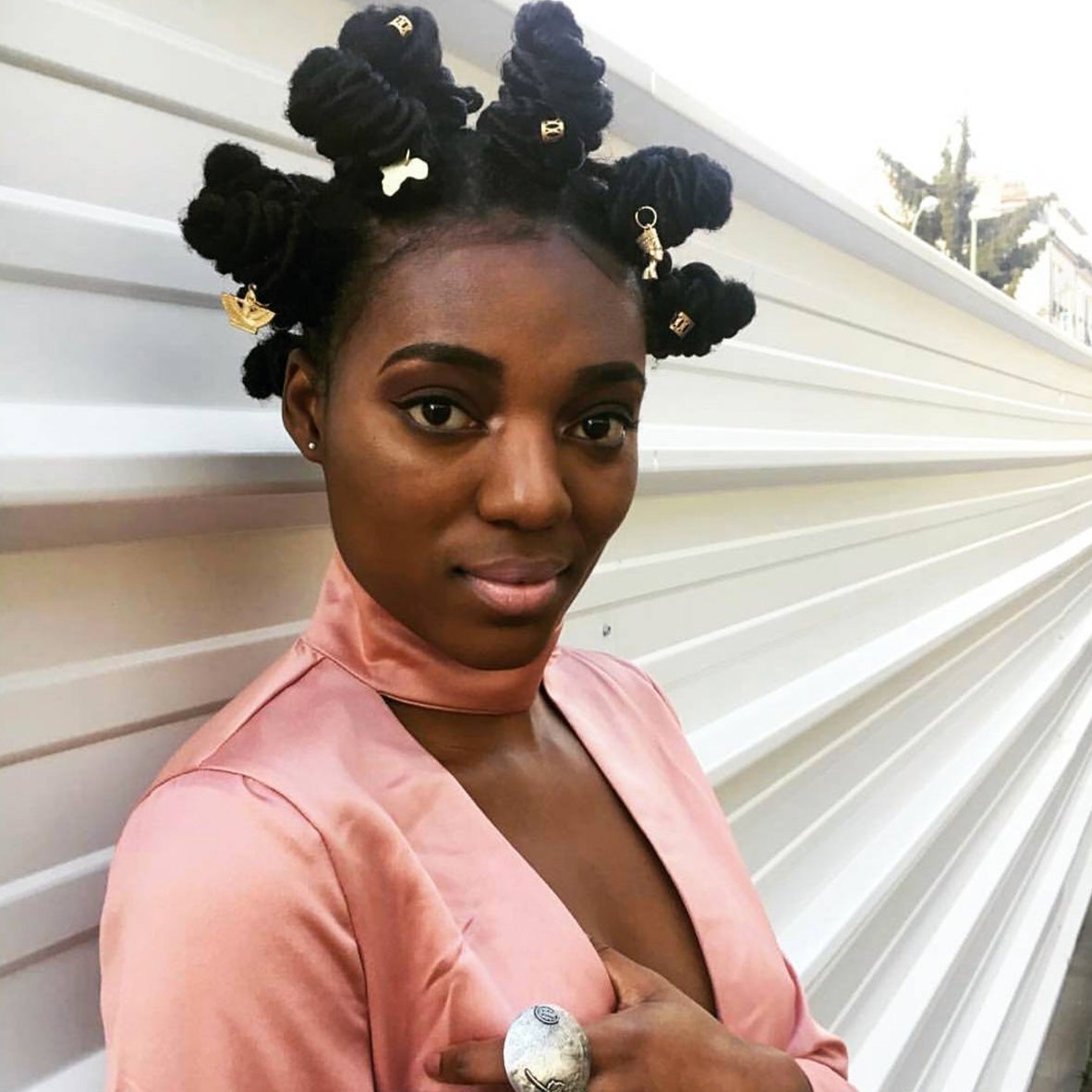 These hair charms and bantu knots are equal parts festive as they are chic.