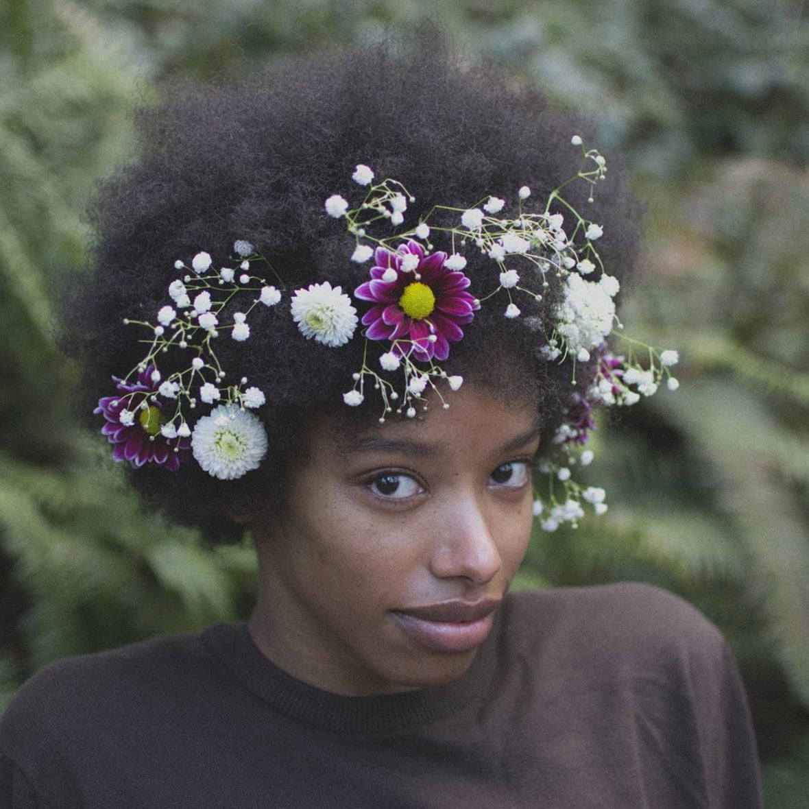 Channel bohemian vibes with a braided crown and real flowers for the finishing touch.