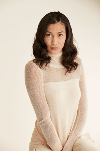 A chunky knit skully ($19, asos.com) and pigtails make for the perfect pairing, since loose or low styles are pretty much the only ones that will work with this type of hat. Modeste parted the hair, then slicked the two sections to the nape of the neck and secured each pony right below the ear. After adding ties to the ends of each pigtail, she lightly pulled the midsections apart for a bubble effect that mimics the pom-pom up top.