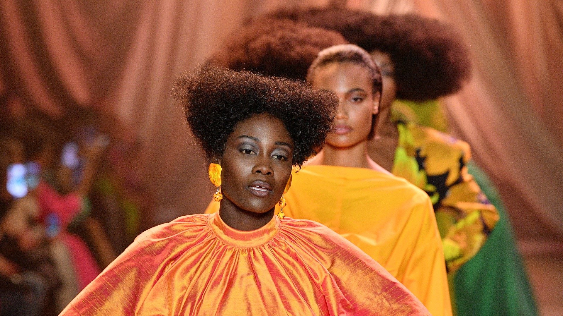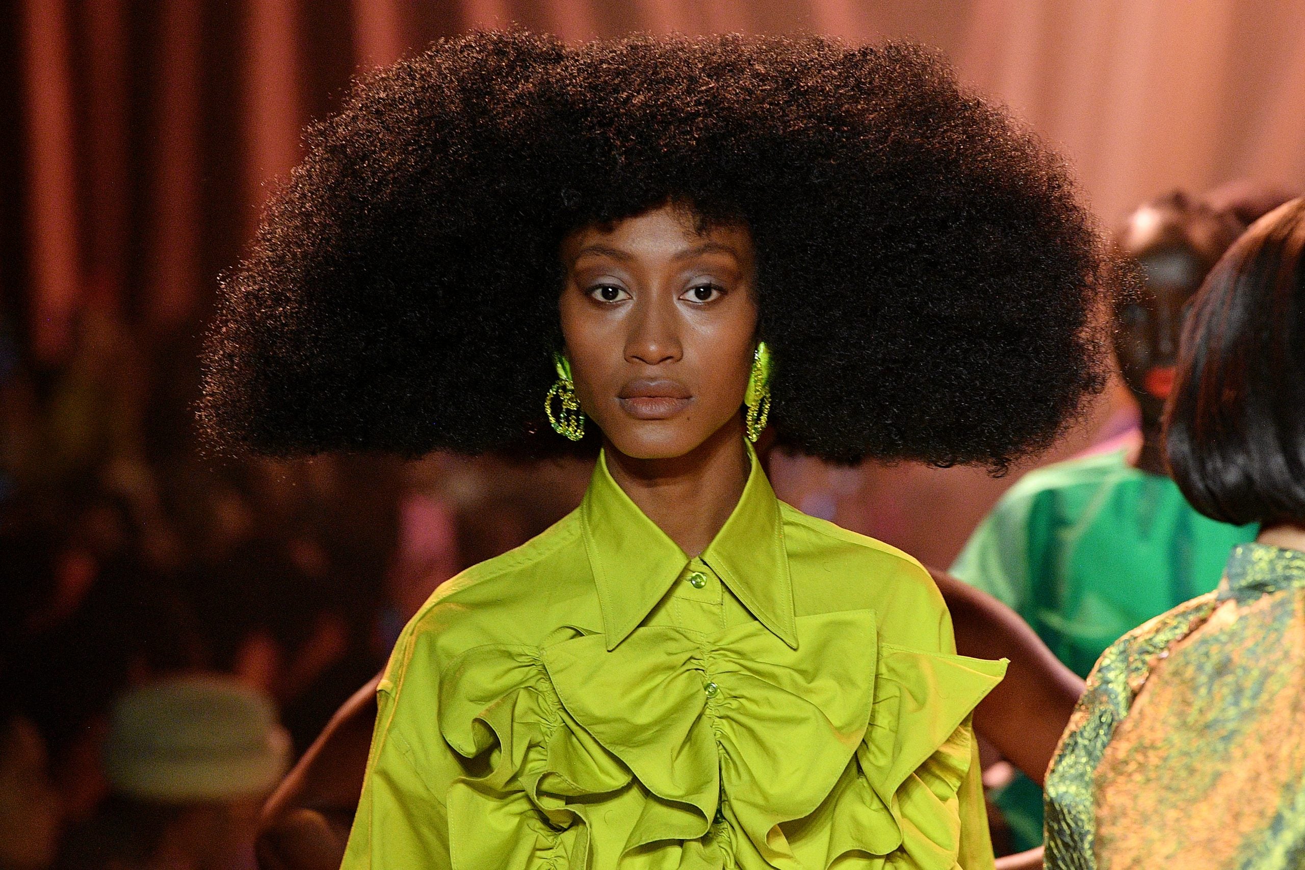 Models showed off LaQuan Smith’s FW2020 collection with R&B inspired hairstyles dreamt up by lead hairstylist and Dyson global styling ambassador, Jawara Wauchope–which means there were plenty of braids, twist, and bangs. “I was going through some nineties R&B albums, and I decided to pull inspiration,” said Jawara.