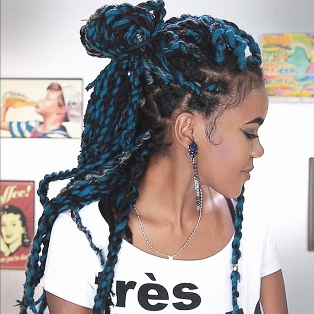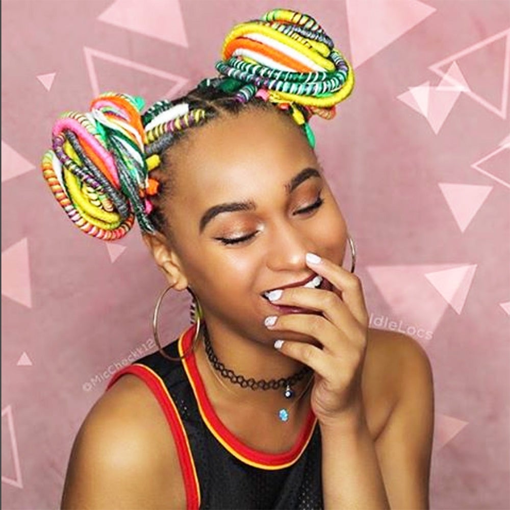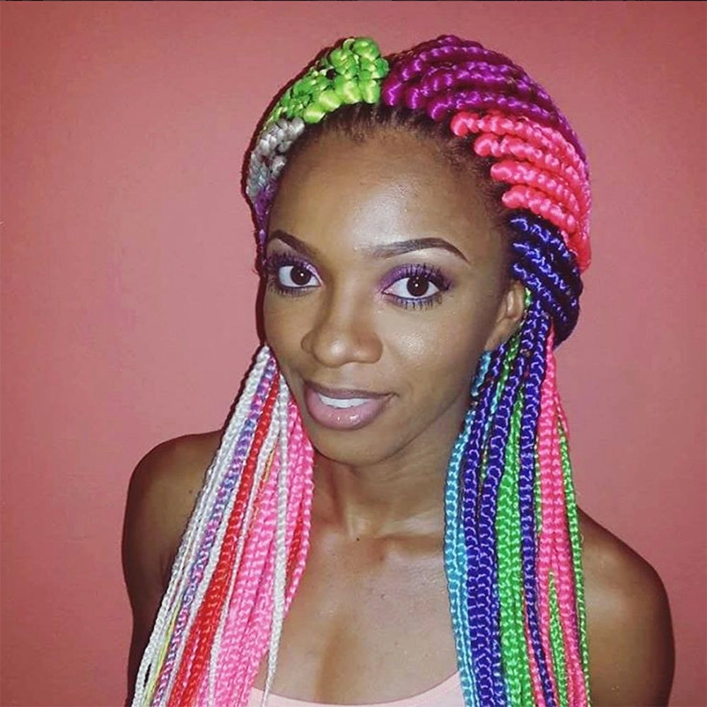 Gone are the days of one-tone dye jobs and boring protective styles. This season, we're witnessing an influx of beautiful brown women diving head first into the technicolor lifestyle. Be it braids, twists, faux locs or crochet, rainbow hues are finding their way into our fall fresh looks and inspiring many to take the same, bold path. Besides famous hair chameleons like Jessica WIlliams, Kelis and of course, Rihanna, there are countless women serving unforgettable mane moments on Instagram. From white hot milkmaid braids to gorgeous green bantu knots, these protective styles are impressive beyond belief.