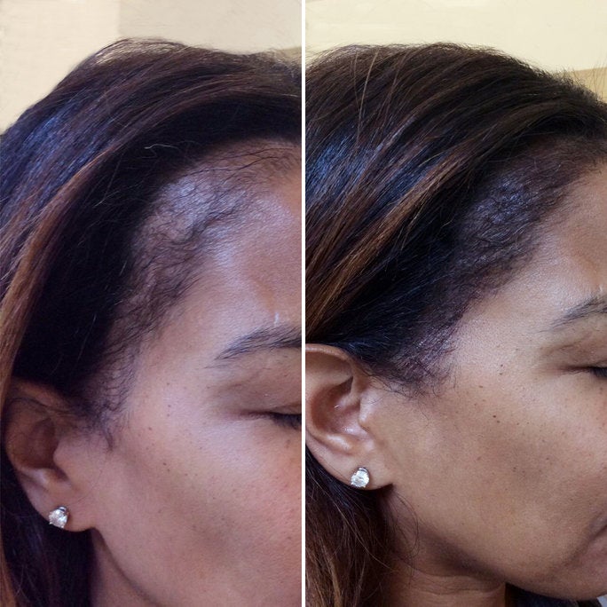 Not all hair loss is alike and women have different hair loss patterns than men. Padilla says that scalp microblading works best on those who have thinning areas, especially on the hairline rather than areas that are completely bald. “In our experience, microblading works best when adding thickness to thinning hair because the strokes created blend in with existing hair strands, creating the natural-looking appearance of thickening hair, adding depth, and shadow. The results look less natural when the area is completely bald,” he says.