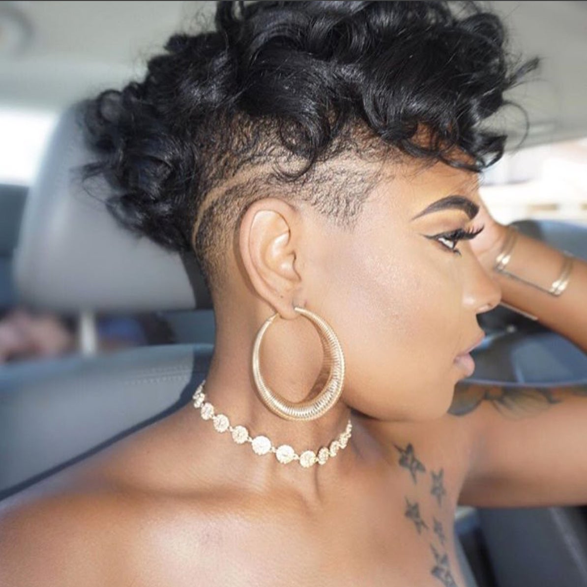 Create a peak-a-boo cut with a shaved side just above the ear.